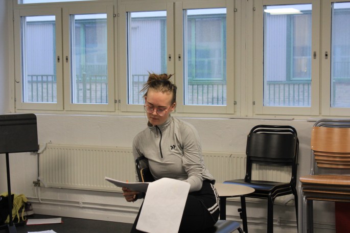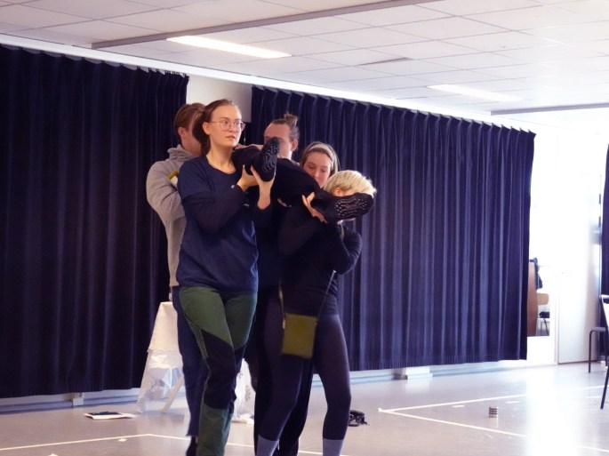 Här träffar vi Wera Nord, dansare och skådespelare i vår pjäs. Wera ansvarar för rollen Von Rumpel, bland annat. Se i följande video och bilder hur hon arbetade i vår kompani: